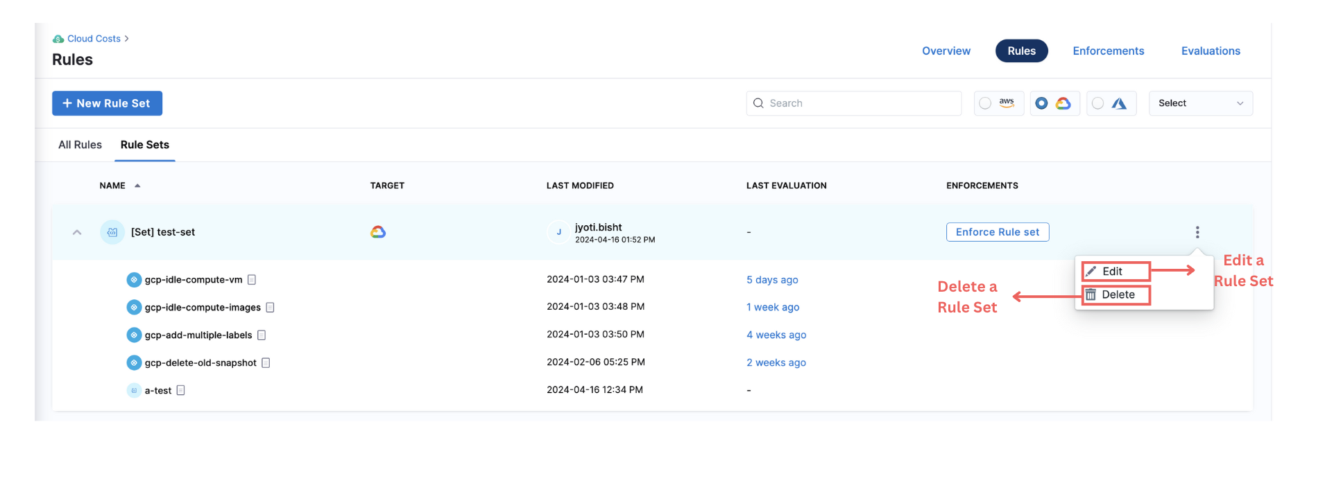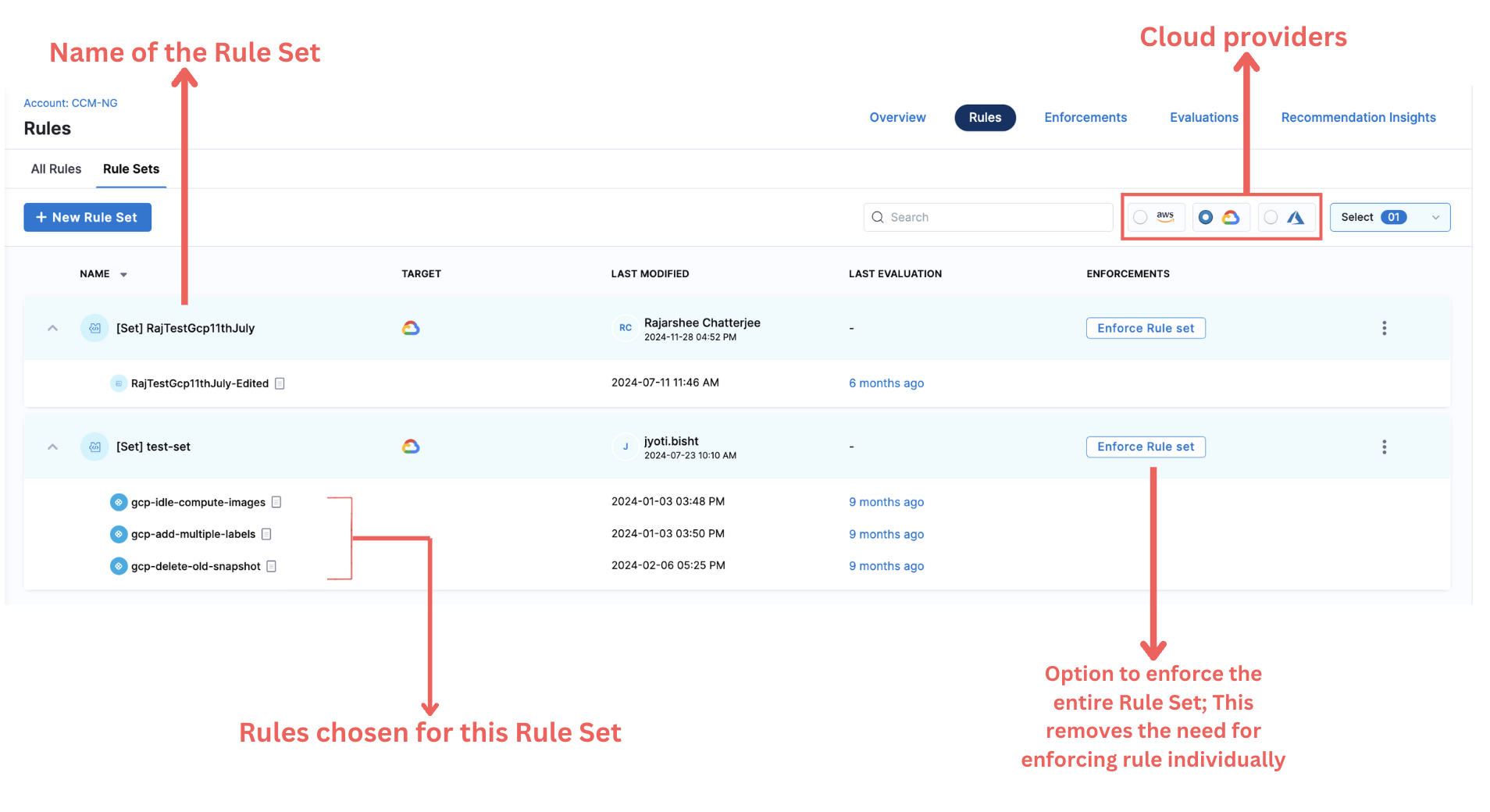 Harness Concepts: Rules, Rule Sets, Enforcements and Evaluations to optimise cloud costs