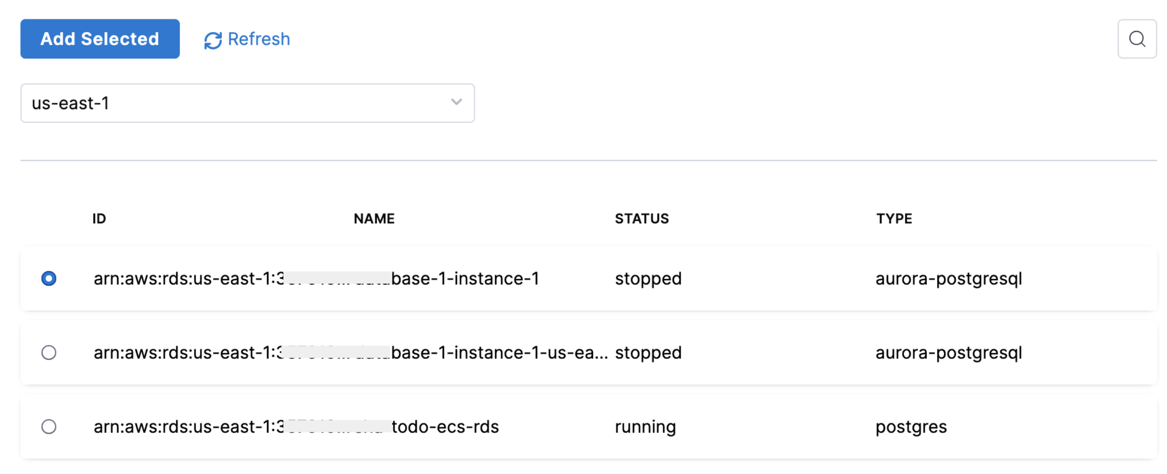 2. Select the RDS instance for which you want to enable AutoStopping Rule and select Add Selected.