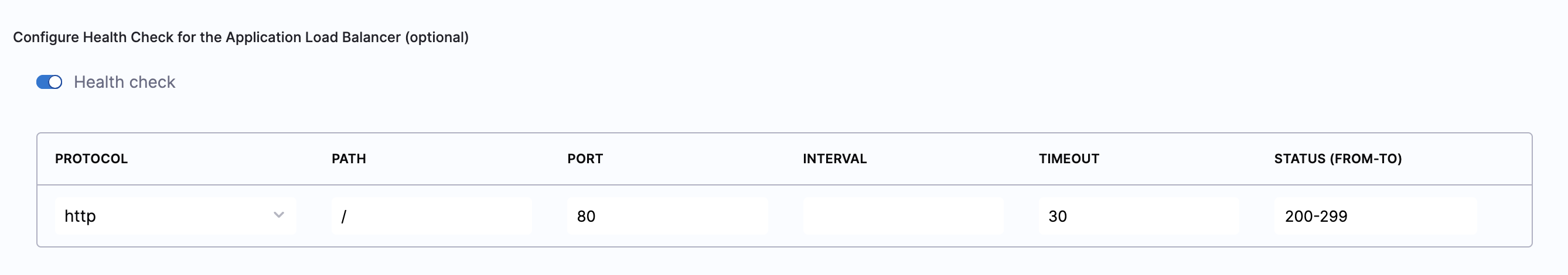 Toggle the Health check button to configure the health check. Health check status should be successful for the AutoStopping rules to come into effect. Set a health check for the underlying application that is running on the cloud resources managed by this AutoStopping rule. The load balancer periodically sends requests as per the settings below to the application. If your application does not support health check, or you do not have any application running, you can disable the health check.