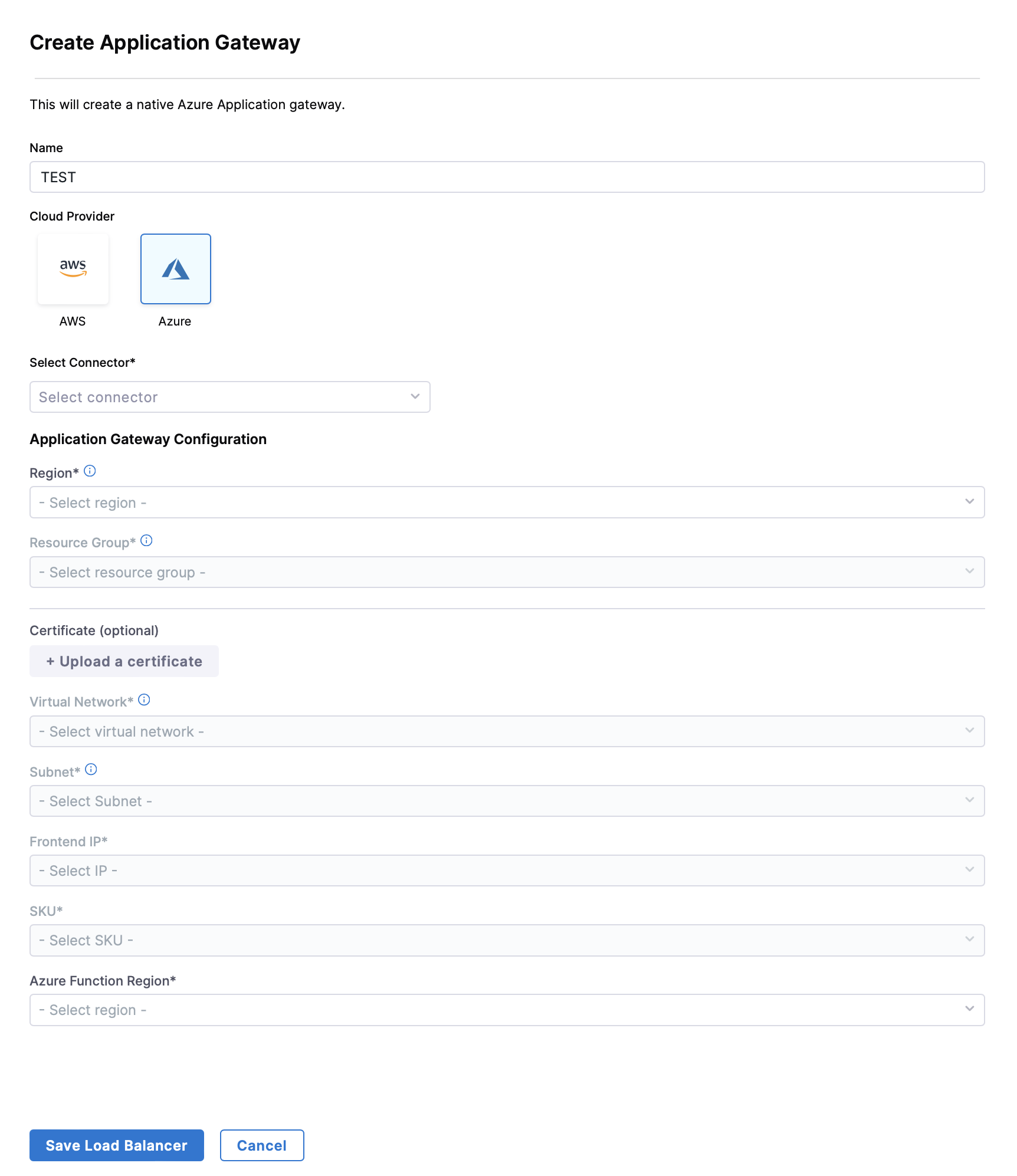 You can either create a new application gateway when creating a new Autostopping rule or you can do so from Load Balancer Manager page. By using the second option, you can easily import the created gateway into your rule.