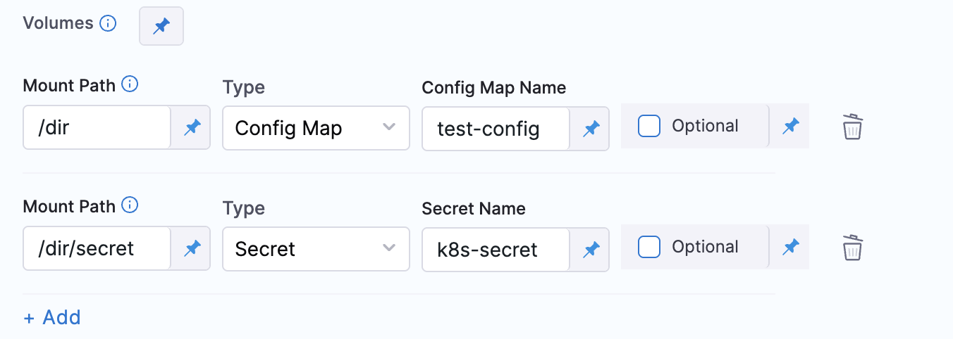 Currently, this feature is behind the feature flag CDS_CONFIG_MAPS_AND_SECRETS_AS_VOLUME. Contact Harness Support to enable the feature.