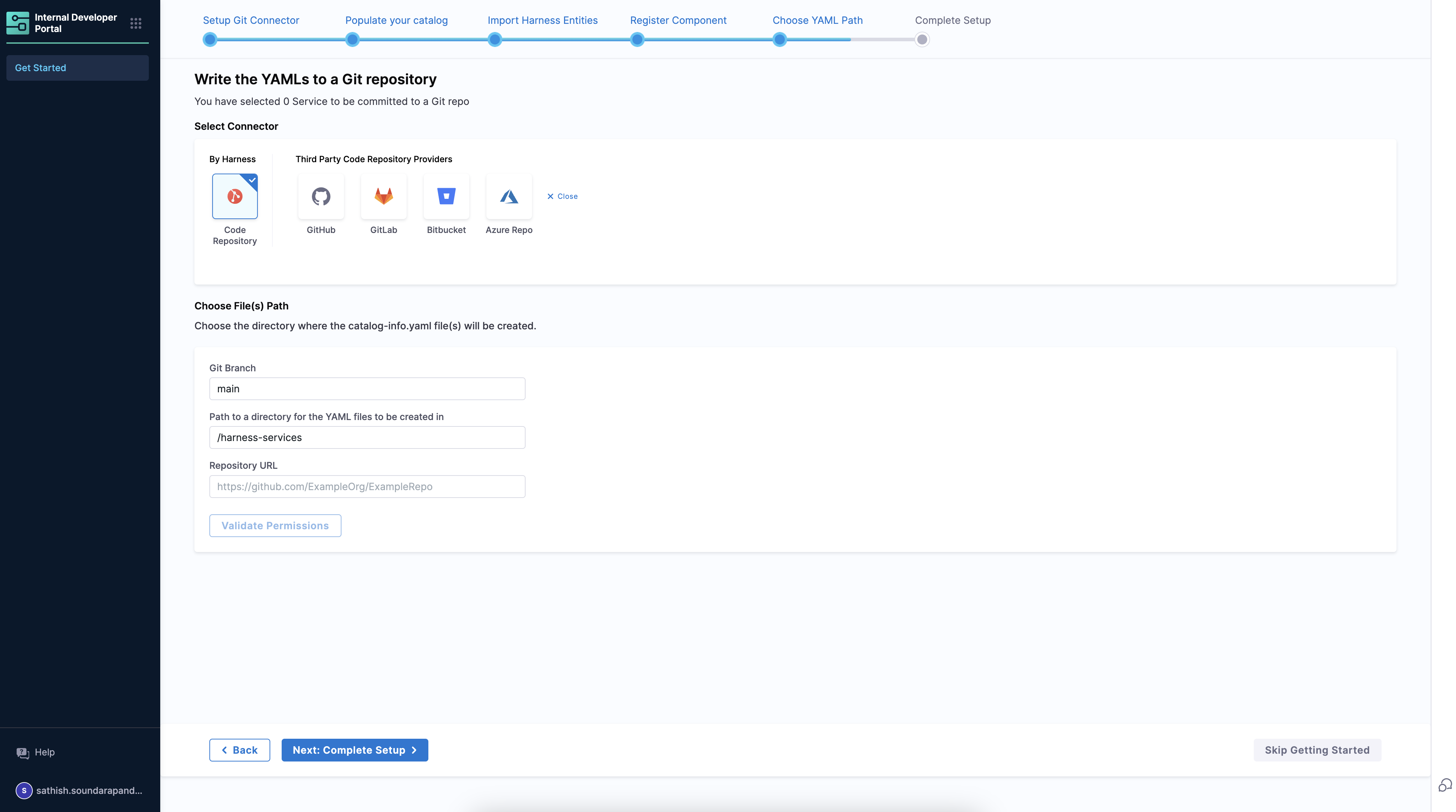 Once you've configured your Git connector and chosen your onboarding path, select Complete Setup to finish the initial configuration. Your catalog will now be populated with the entities you've imported or created.