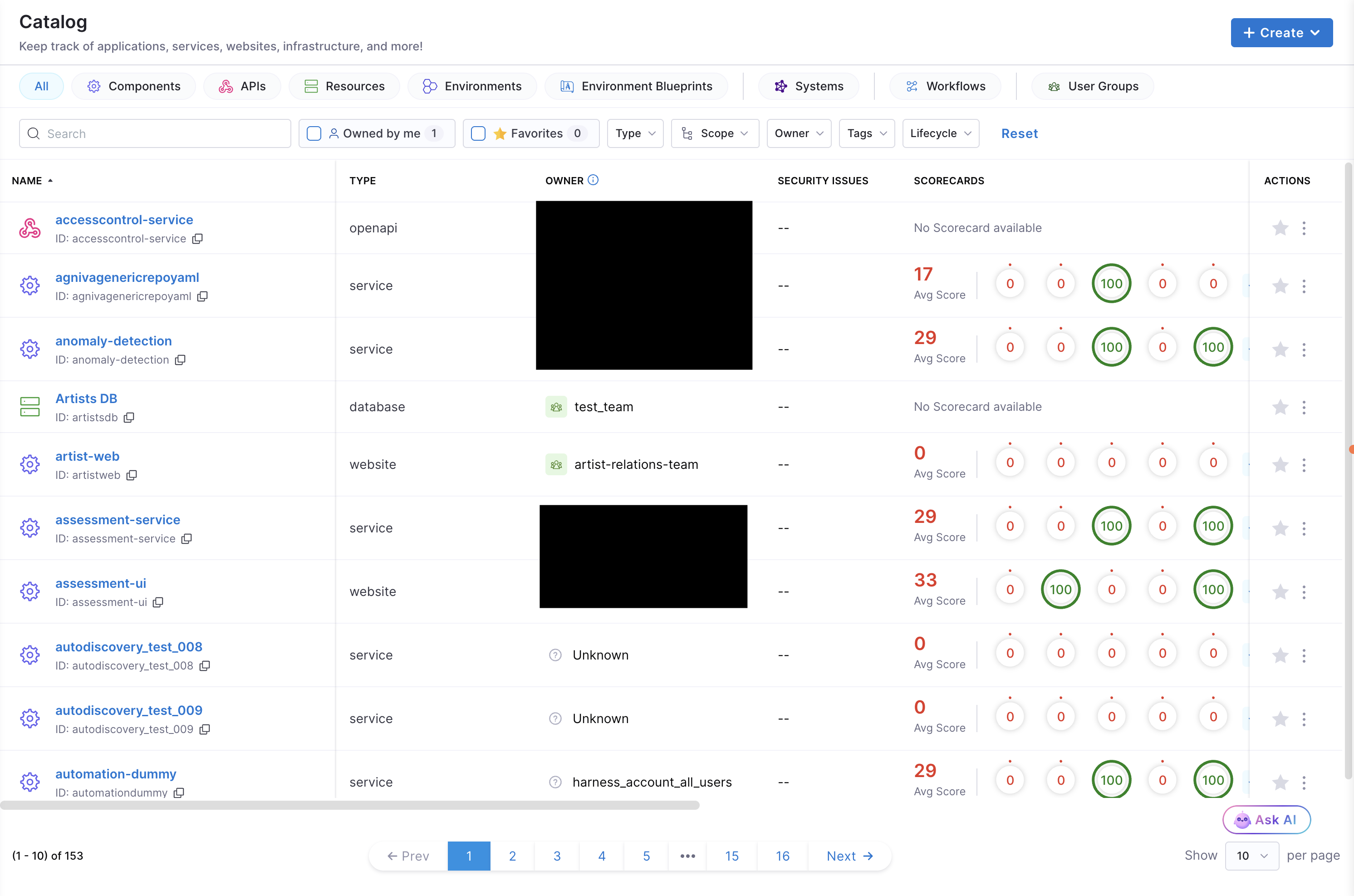The Software Catalog provides a centralized registry of all your services, APIs, libraries, and infrastructure components. Track ownership, dependencies, and metadata in one searchable location.