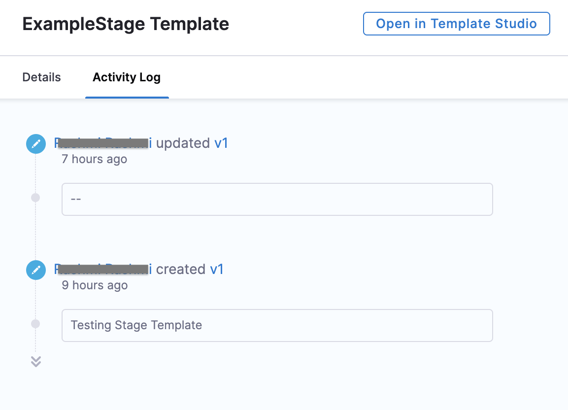 - Track all template events using the Activity Log option. It shows you details like who created the template and template version changes.